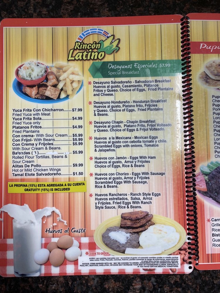 Introducing Rincon Latino, your delightful gateway to Latin American cuisine in Doraville, GA. This vibrant eatery serves a diverse menu featuring traditional dishes from Central America and Mexico, with standout options such as pupusas, carne asada tortas, and comforting desayunos especiales. The restaurant is especially praised for its flavorful stuffed pupusas, made fresh and customizable to satisfy every palate.